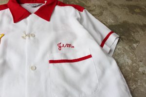 白×赤のカラーリングがGOODなボウリングシャツ。