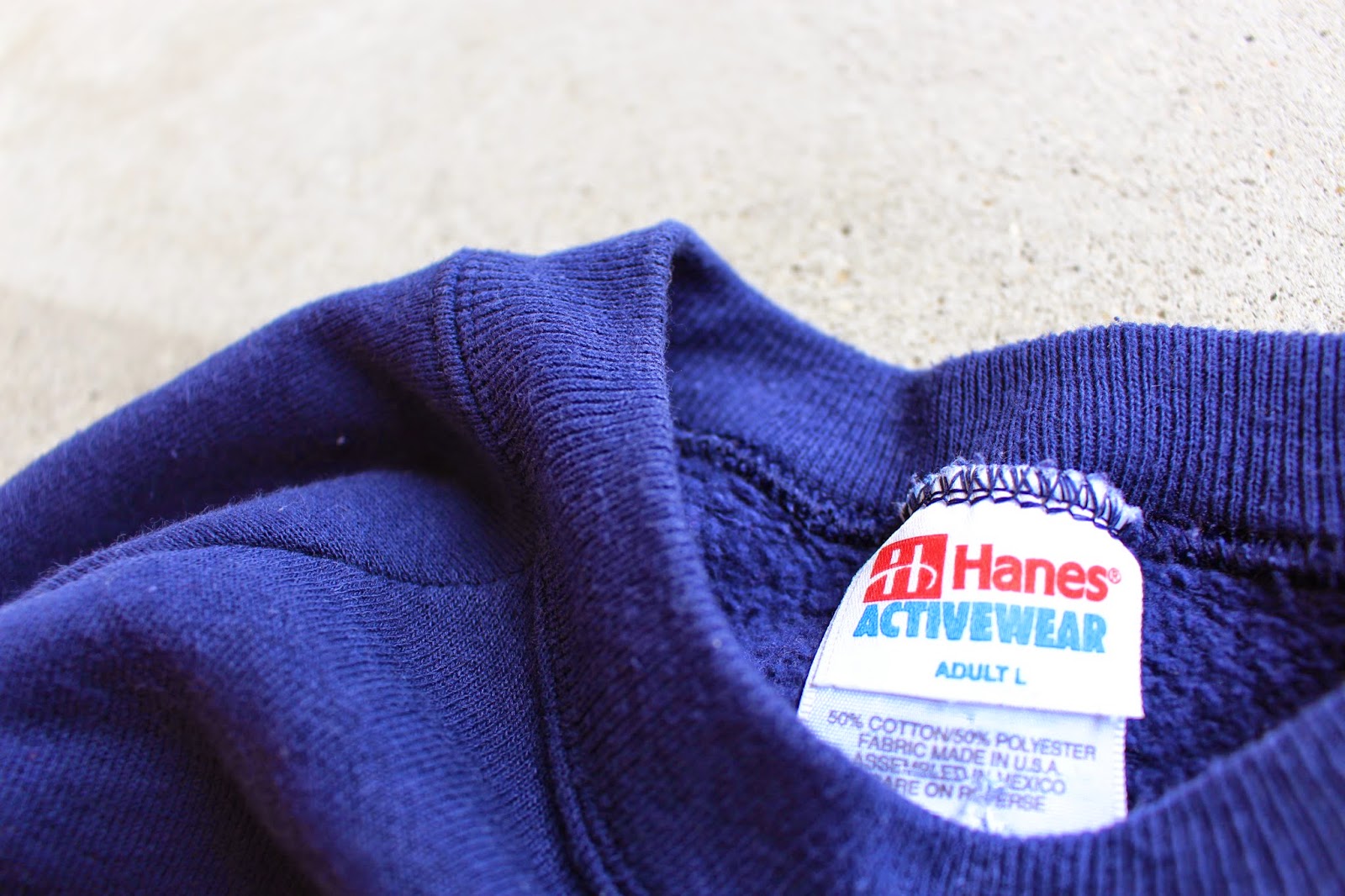 紺色ボディーにUSAの文字が大きくデザインされた90年代「HANES」のスウェット。