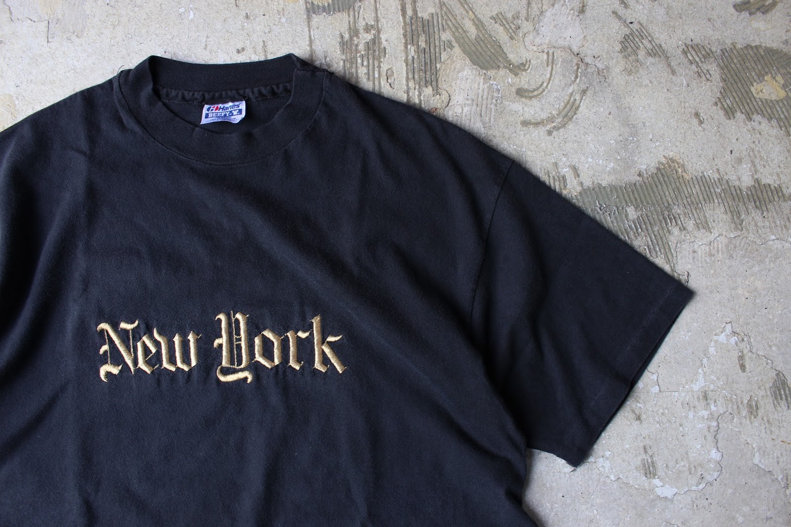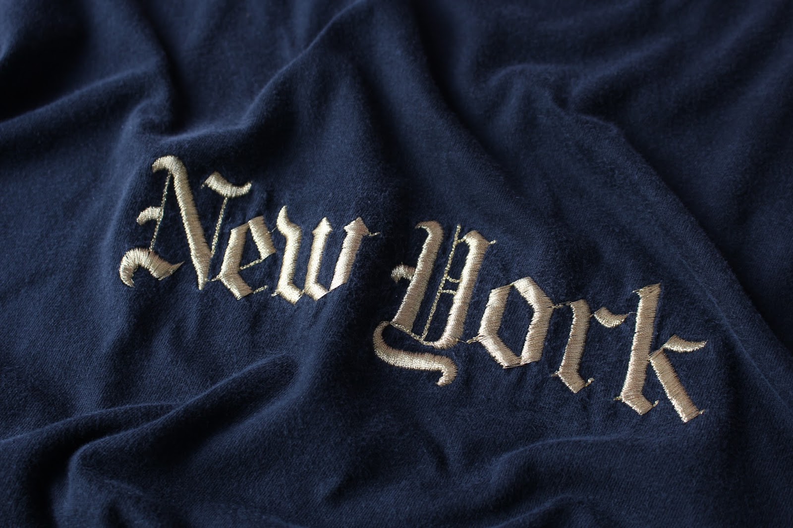 ブラックボディーにゴールドの糸で「NEW YORK」と刺繍が施されたコチラ。