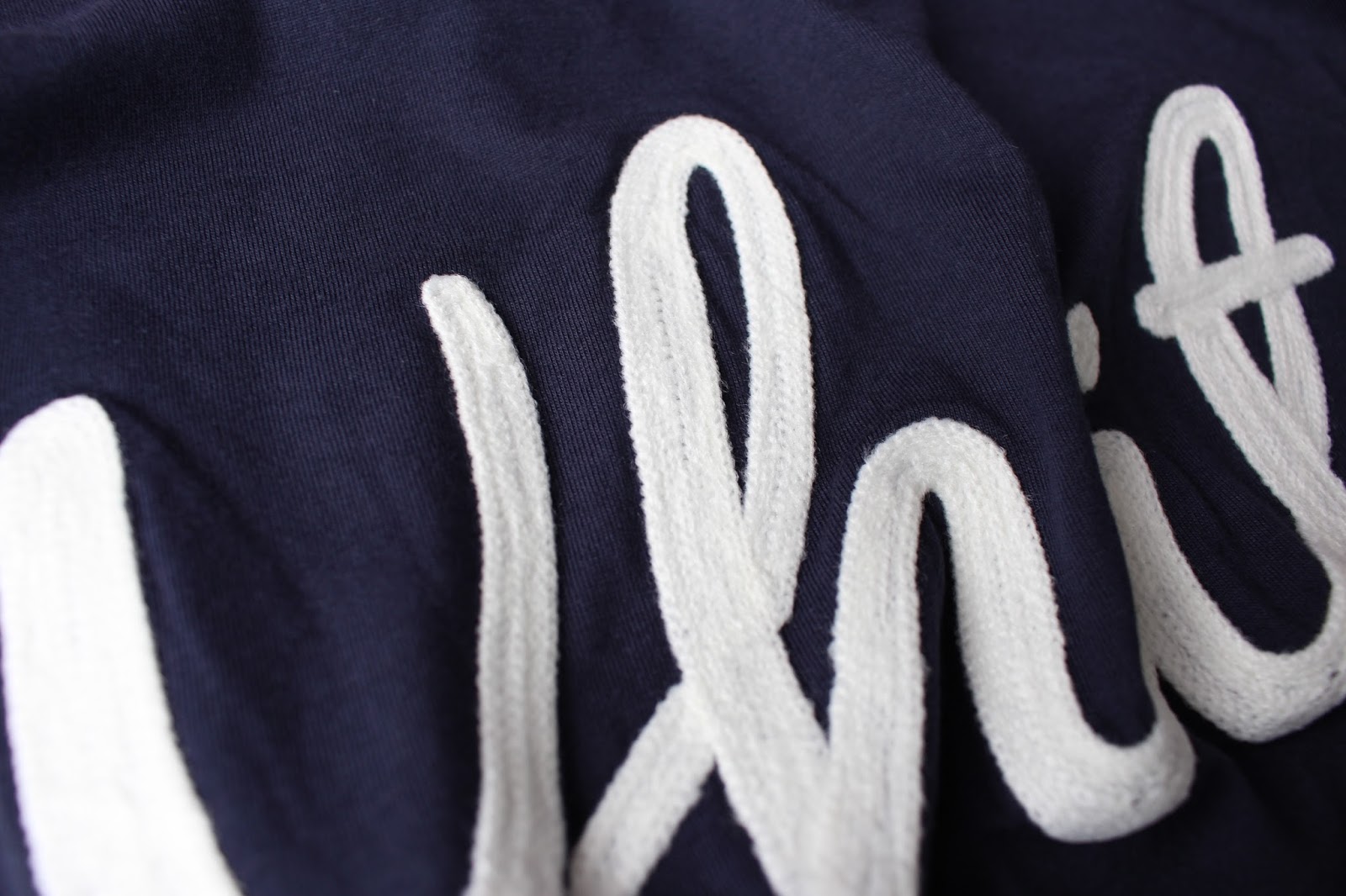 フロントに大きくチェーンステッチが施されたシンプルなコチラ。