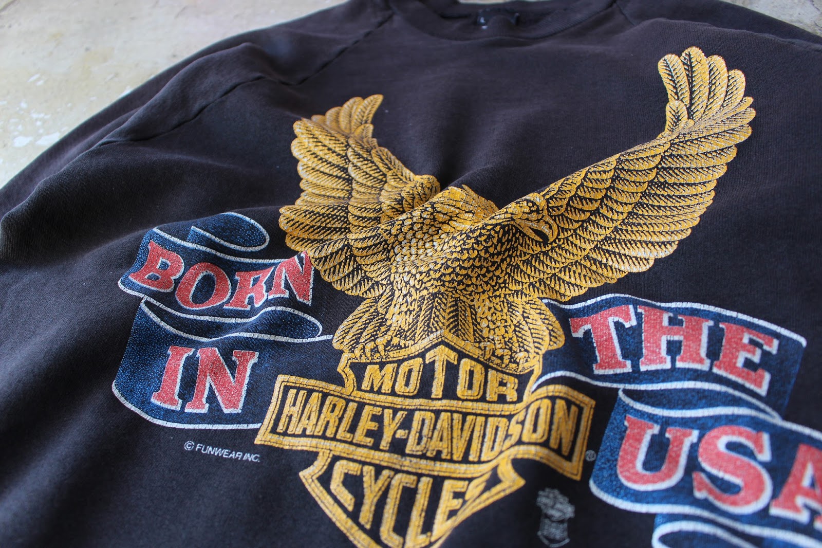 ブラックボディのスウェットにインパクトのある「ハーレー」のプリントが施された一着☆